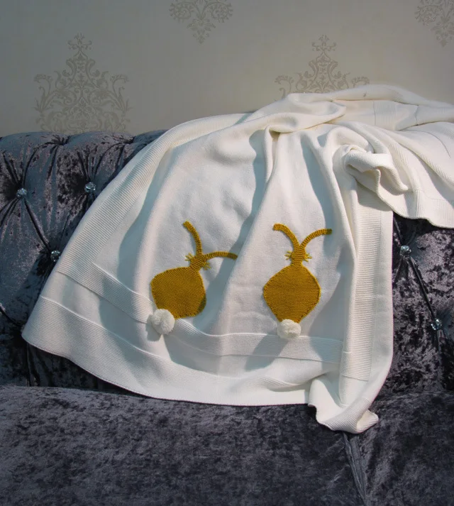 . Harga Gaya Nordic katun putih Rajutan bayi selimut dengan kuning kelinci desain Sofa multifungsi bayi selimut Membedung 100*90 cm Online Murah.